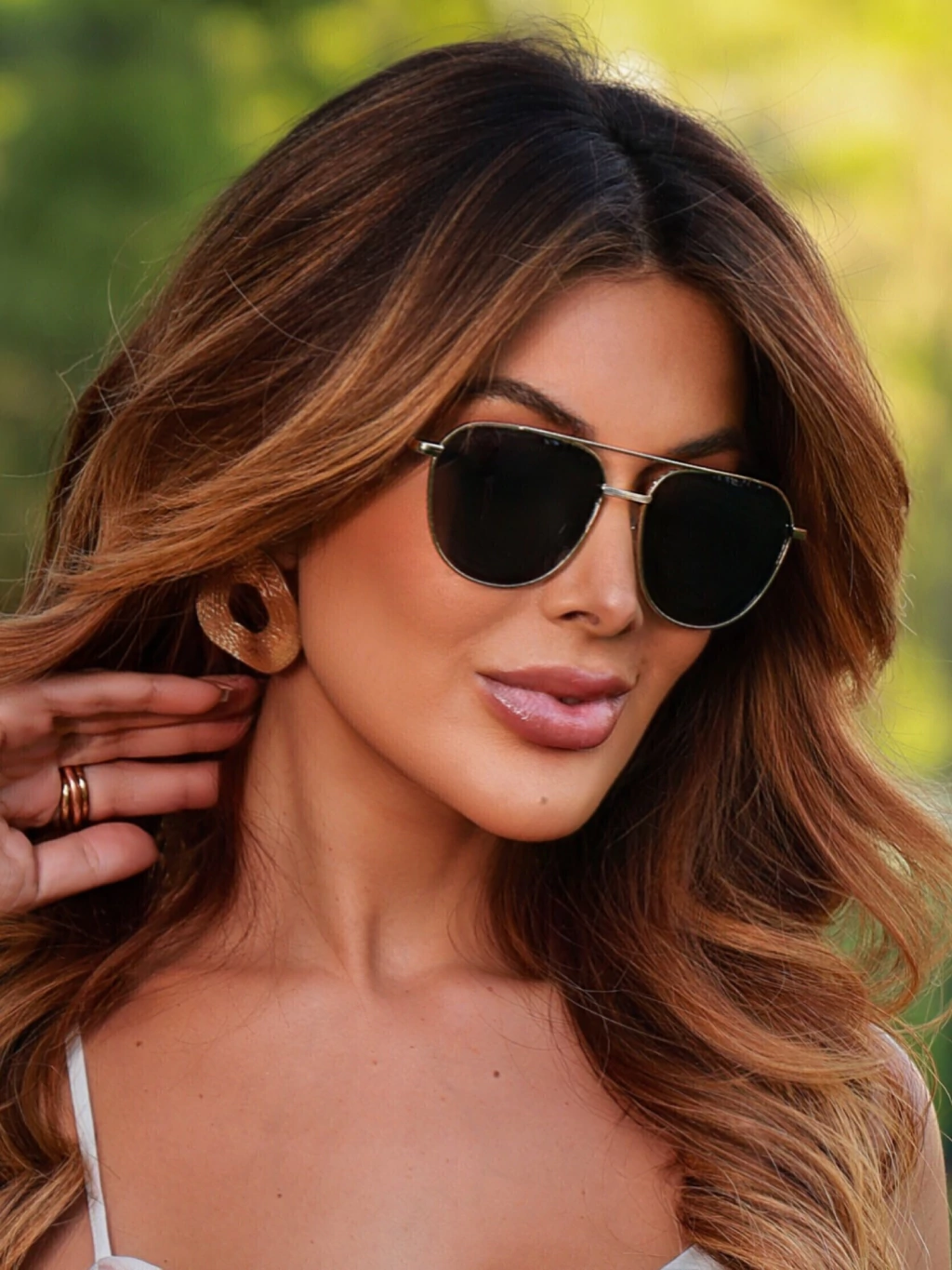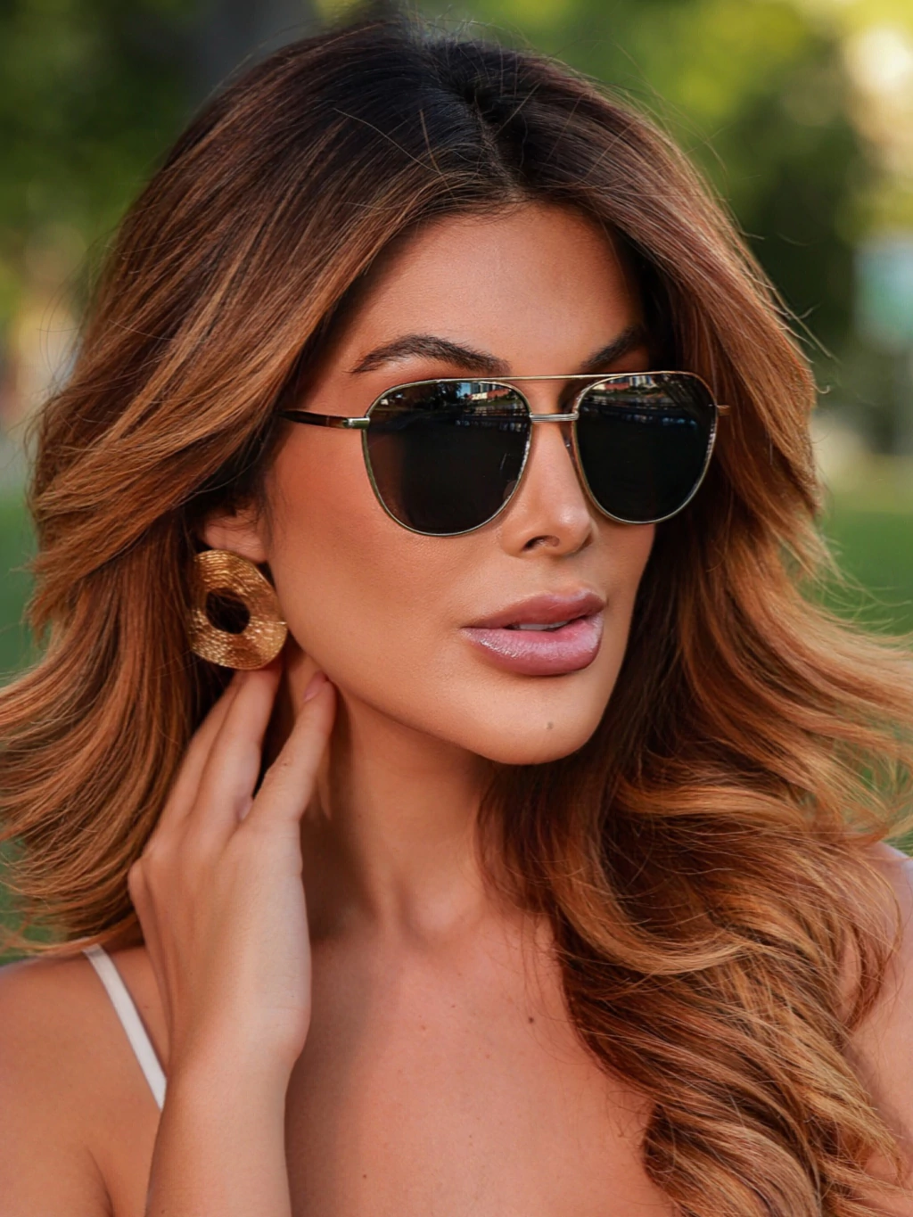 Posicione o Aviador Garden como o "clássico poderoso" para suas clientes. Destaque que a combinação preto e dourado é super versátil e funciona tanto para looks despojados quanto mais elegantes.