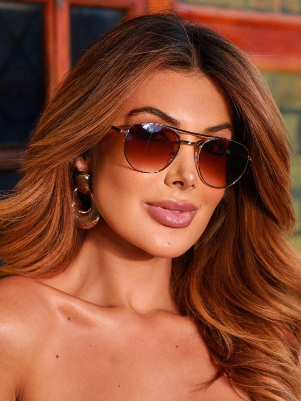 O Aviador Jamaica é aquele óculos que toda mulher precisa ter no guarda-roupa! Com seu design clássico aviador em metal premium, lentes marrom degradê super elegantes e hastes prateadas que trazem um toque de modernidade, ele é pura sofisticação. O degradê marrom cria um visual suave e feminino, enquanto as hastes prateadas adicionam aquele brilho especial que valoriza qualquer look. O tamanho generoso (13,5 cm de largura total) garante cobertura perfeita e um visual marcante que funciona tanto para o dia a dia quanto para ocasiões especiais, dando aquele toque de personalidade que faz toda diferença.