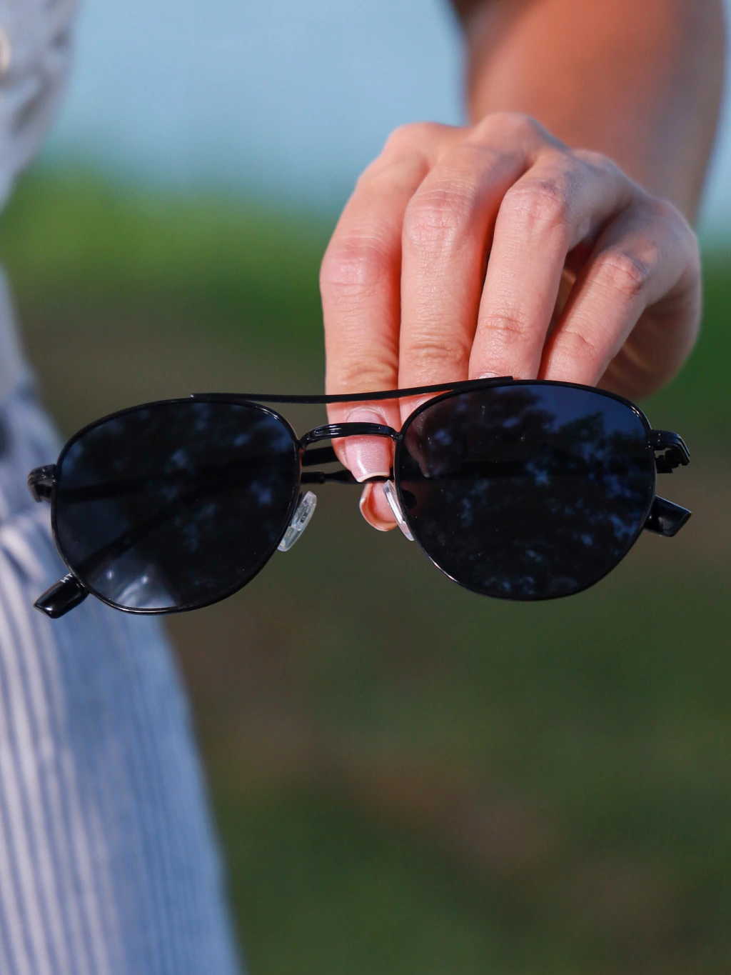 O Aviador Jamaica é aquele óculos que toda mulher precisa ter no guarda-roupa! Com seu design clássico aviador em metal premium e lentes pretas super elegantes, ele traz aquela vibe atemporal que nunca sai de moda. O tamanho generoso (13,5 cm de largura total) garante cobertura perfeita e um visual marcante que eleva qualquer look do básico ao sofisticado. É o tipo de peça que funciona tanto para o dia a dia quanto para ocasiões especiais, dando aquele toque de personalidade que faz toda diferença.