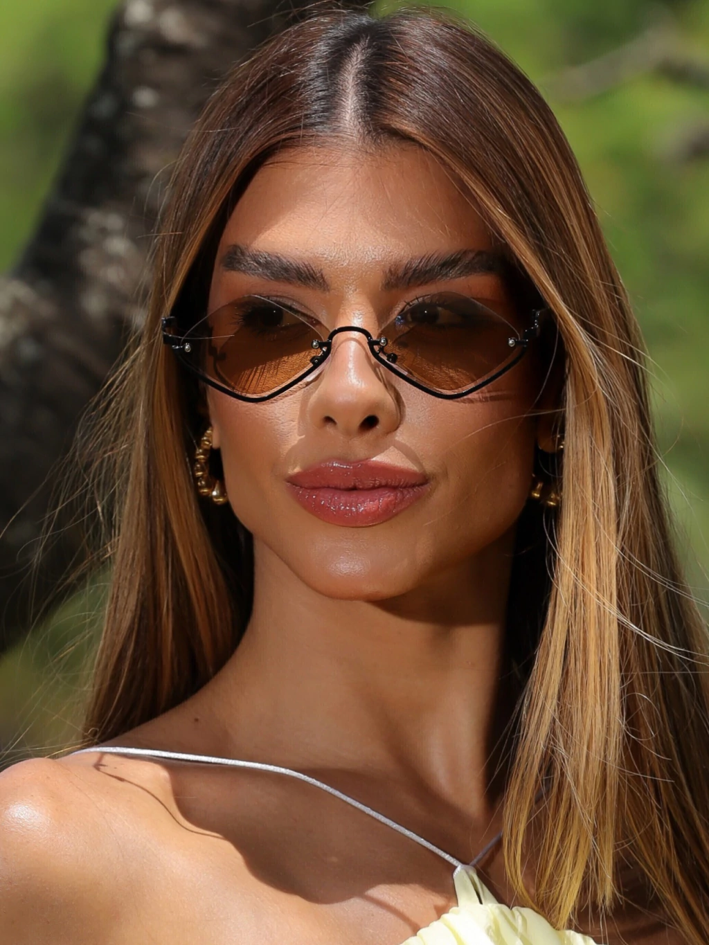 O Naomi 2.0 é simplesmente maravilhoso! Com seu formato losango super moderno e sofisticado, esse óculos de sol tem aquela cara de rica que toda mulher ama. A combinação da lente marrom com a armação preta em metal cria um visual elegante e atemporal que funciona perfeitamente para quem busca estilo e personalidade.