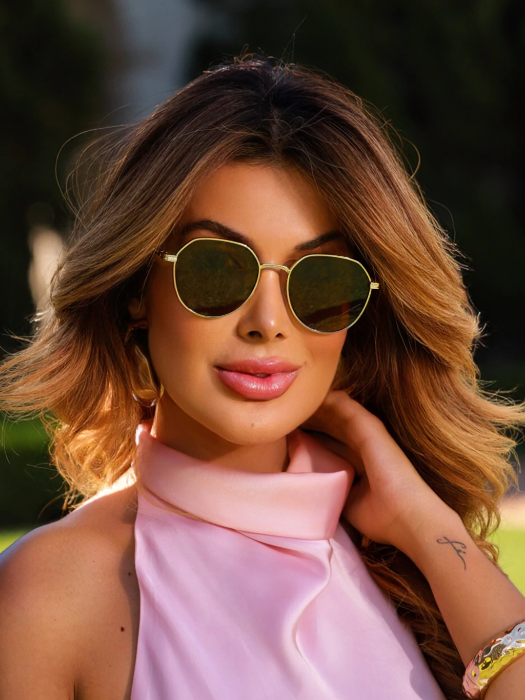 Posicione o James marrom e dourado como o "óculos statement" para quem quer se destacar com elegância. Destaque como o dourado ilumina o rosto e a lente marrom é super versátil, combinando com tons terrosos, neutros e até mesmo looks mais coloridos.