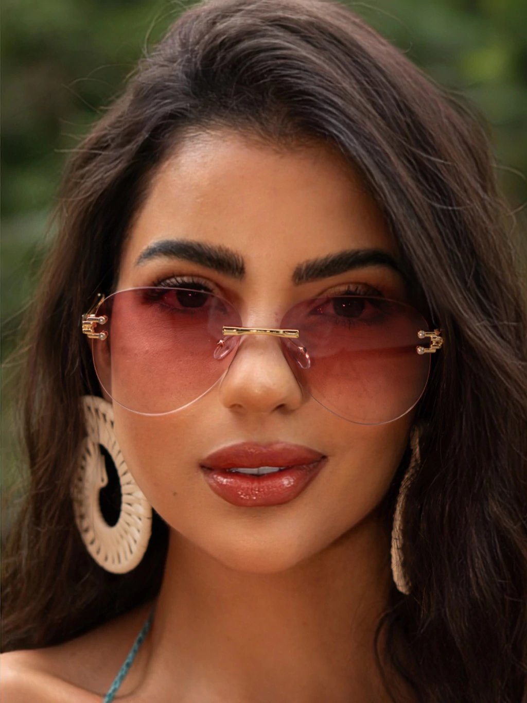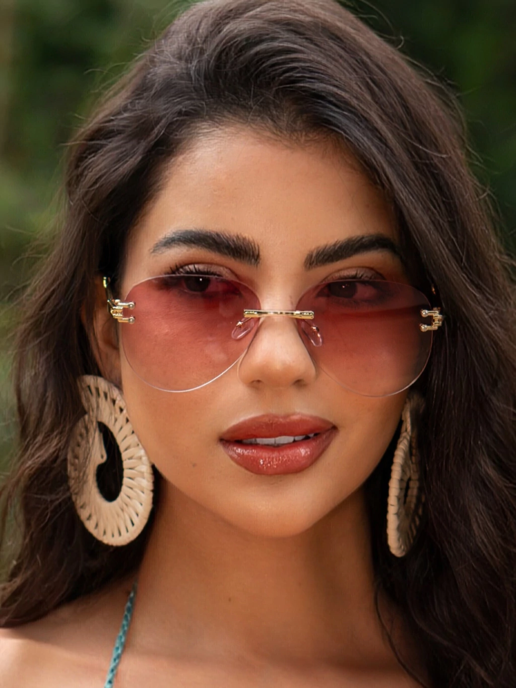 O óculos Yara é simplesmente maravilhoso! Com seu formato quadrado super moderno em design rimless e a combinação sofisticada de lente rosa degradê com haste dourada, ele traz aquela vibe de luxo que toda mulher merece. O degradê rosa cria um efeito visual incrível, mais escuro na parte superior e suavizando em direção à base, enquanto o design rimless deixa o visual mais clean e elegante.