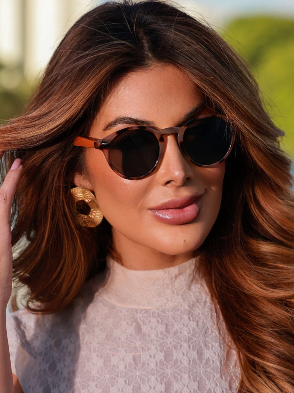 O Hills é aquele óculos redondo que toda mulher precisa ter no guarda-roupa! Com seu design clássico e atemporal em acetato, ele combina lente preta com haste camuflado laranja, criando um contraste super vibrante e cheio de personalidade que funciona para qualquer ocasião. A lente preta traz elegância clássica, enquanto o padrão camuflado laranja nas hastes adiciona um toque ousado e moderno - uma combinação perfeita para quem gosta de se destacar com muito estilo. O formato redondo é super versátil e combina perfeitamente com rostos quadrados, retangulares e ovais, criando um equilíbrio harmonioso que realça os traços naturais. Com 4,5 cm de diâmetro, ele tem o tamanho ideal - nem muito grande, nem muito pequeno - perfeito para quem busca elegância com atitude.