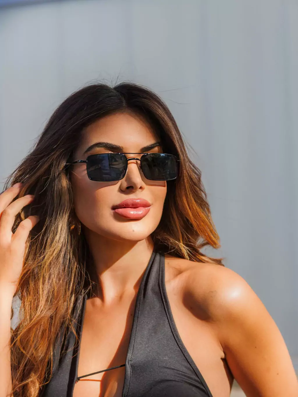 O óculos Hawai é simplesmente maravilhoso! Com seu formato retangular super estiloso e estrutura em metal premium, ele traz aquela vibe sofisticada que toda mulher merece. As lentes pretas combinadas com hastes pretas criam um visual atemporal e elegante, perfeito para quem quer arrasar no dia a dia ou em ocasiões especiais.