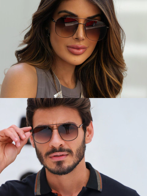 Posicione o Samba degradê como o óculos de quem tem personalidade e bom gosto. Destaque que o marrom degradê é a cor da temporada para quem quer fugir do básico preto sem perder a elegância. Nas suas vendas, enfatize como ele complementa looks em tons de bege, caramelo, verde militar e até mesmo preto. A dica é mostrar que o degradê suaviza o rosto e dá um ar mais sofisticado. Use frases como "o degradê que valoriza seu olhar" e sempre mencione a proteção UV400 e resistência a riscos como garantia de qualidade.