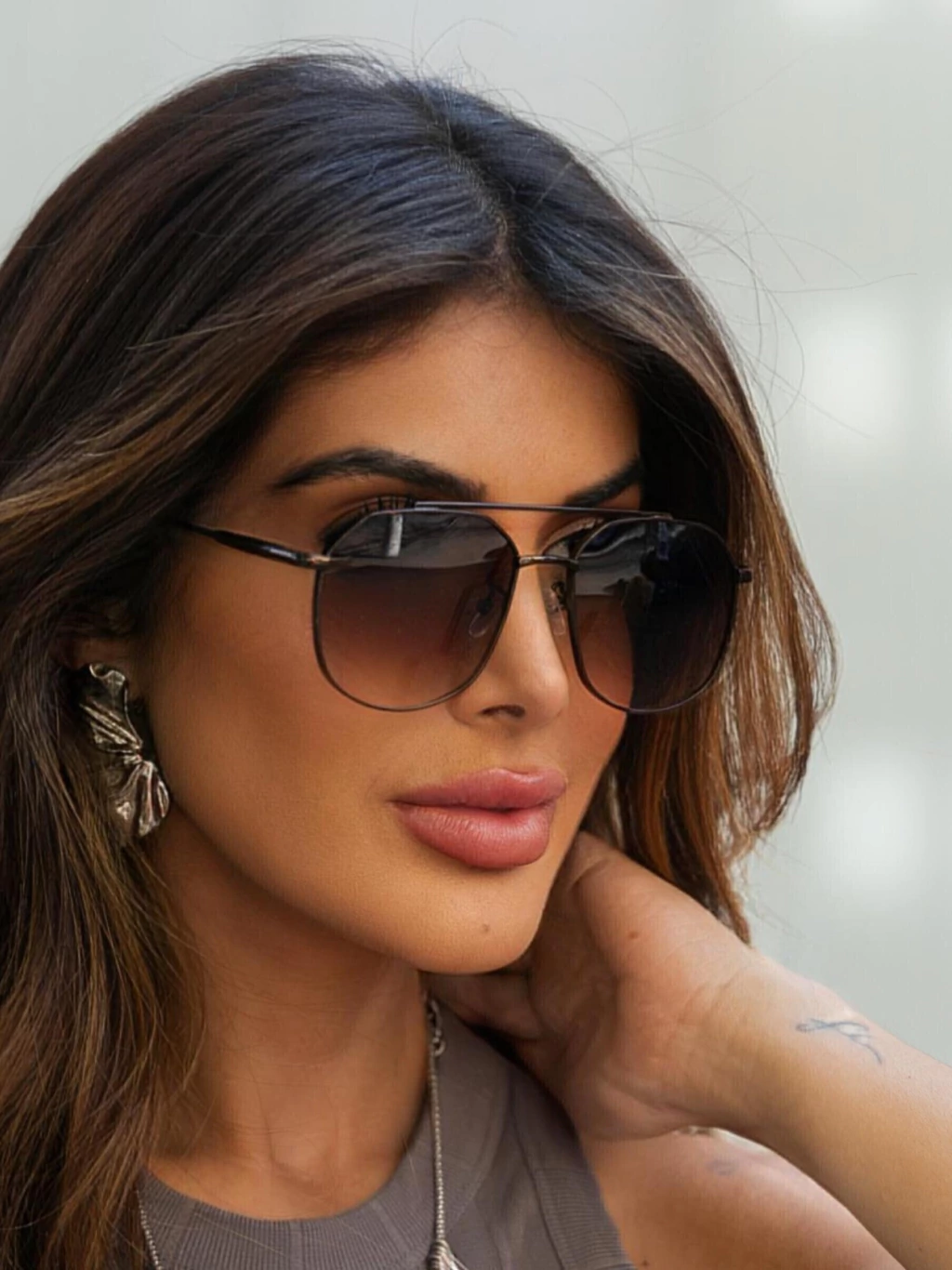 O óculos Samba em marrom degradê é pura sofisticação! Essa combinação de lente marrom degradê com haste preta é simplesmente maravilhosa e super estilosa. Com seu formato retangular moderno e estrutura em metal resistente, ele traz aquele toque elegante que todo mundo merece. A lente degradê cria um efeito visual incrível, mais escura na parte superior e suavizando em direção à base, oferecendo proteção UV400 completa com muito charme. É perfeito para rostos ovais, quadrados e diamante, e com suas dimensões equilibradas (5,1cm de diâmetro), fica lindo em qualquer formato de rosto.